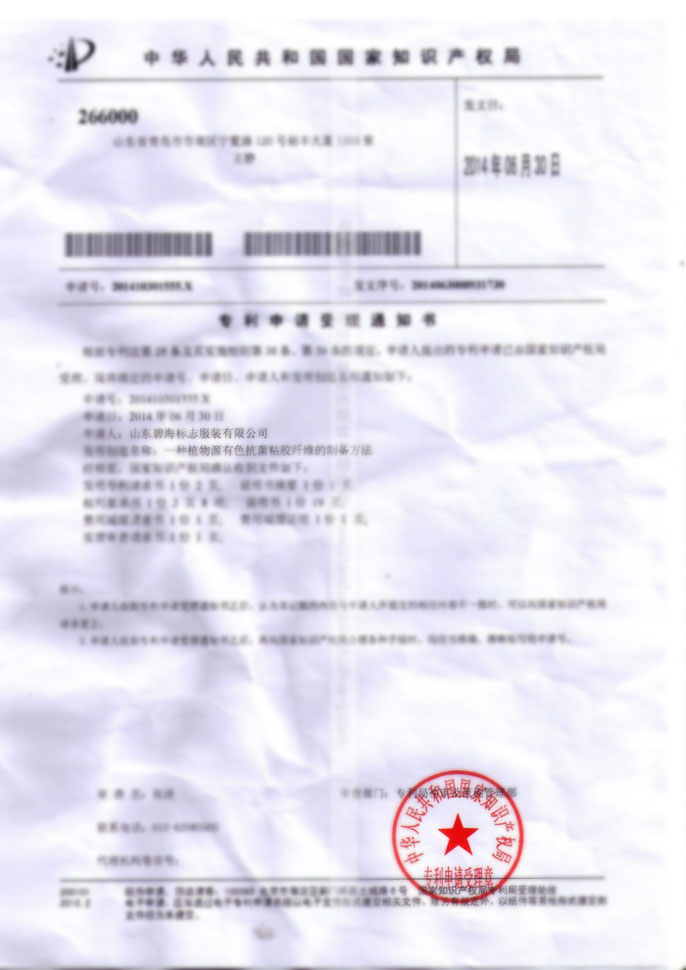 山东碧海专利申请受理通知书1