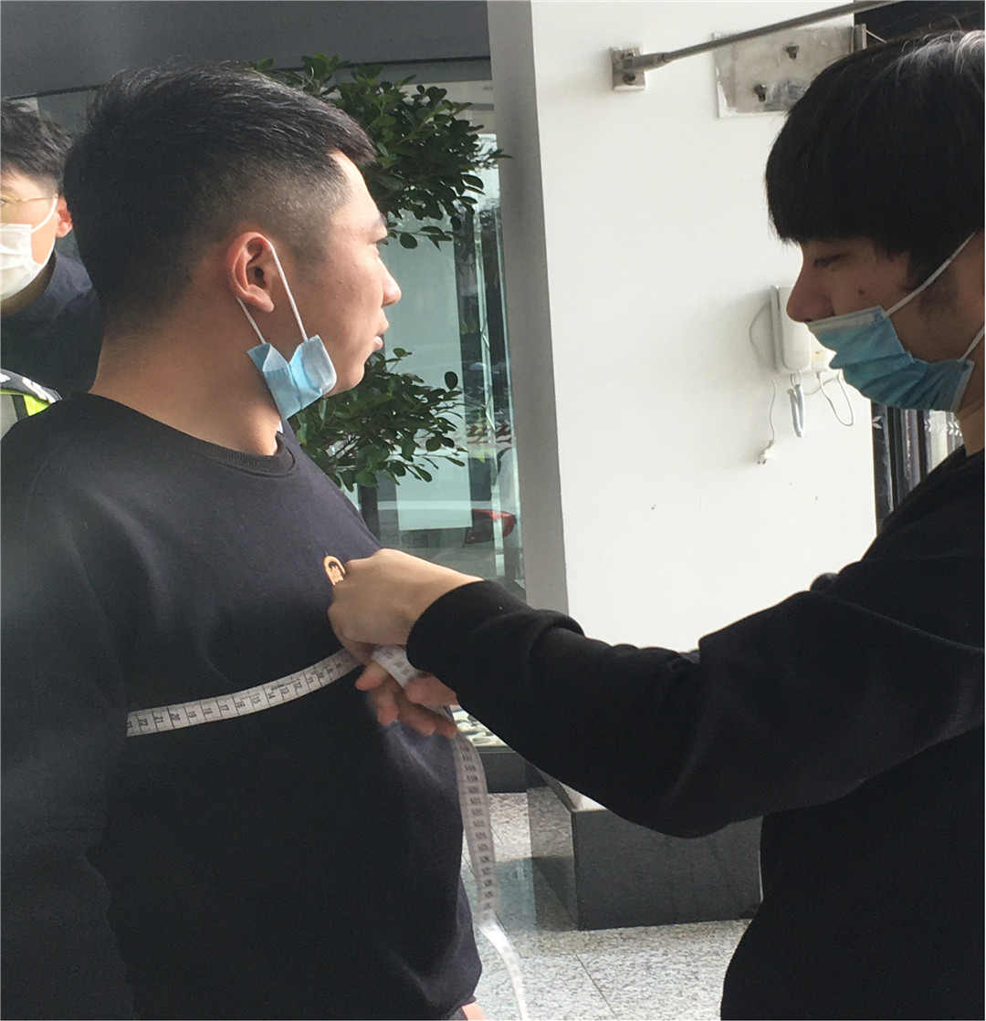 据了解,本次量体工作持续进行了近4个小时,碧海工作人员克服了测量人数多,数据记录繁杂等困难,由于测量数据涉及的人体部位不同,碧海工作人员要不间断地进行蹲起站立等运动,运动量和劳动量巨大,汗珠不断地从工作人员的脸上、额头上滚轮下来。碧海工作人员纷纷表示,公司的服务理念就是专注职业装领域30年,全程服务,舒心之选,一切付出都是值得的,而且为敬爱的公安队伍服务,能让大家穿着合体的服装,展现公安队伍英姿飒爽的形象,很骄傲也很自豪。 本文由小编原创撰写,图片原创拍摄,版权所有。如需转载请联系职业装专家,侵权必究。 |