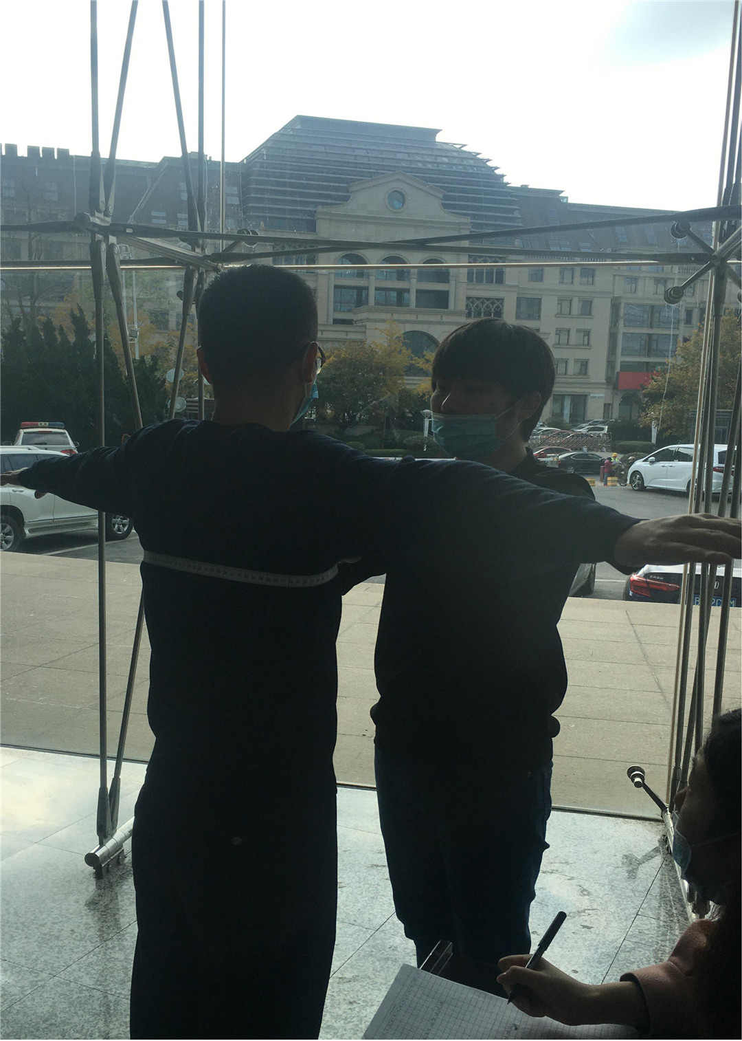 在青岛市公安局交通指挥中心大厅内,碧海工作人员正在为我市交警支队近200名相关人员进行量体工作。量体过程中,碧海工作人员秉承着规范、细致、准确、周到、快捷的服务标准,认真为大家服务。
