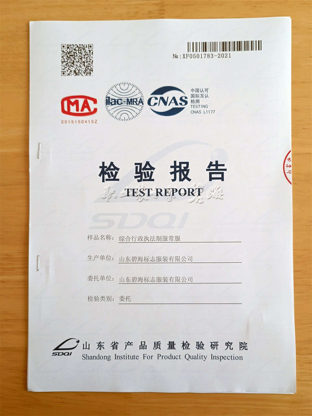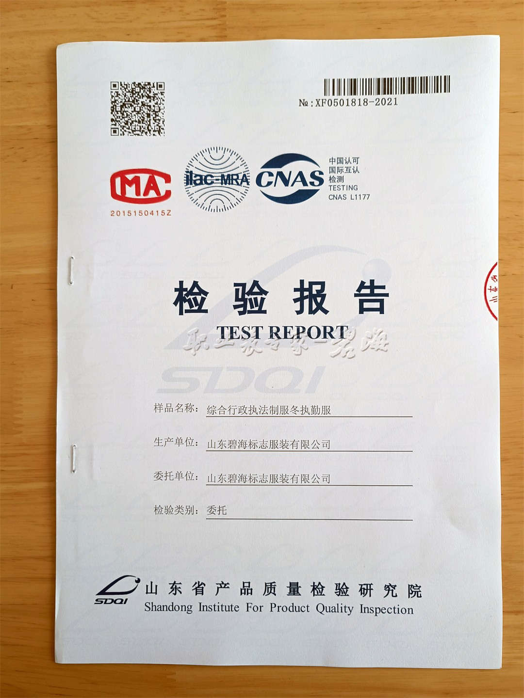 近日,山东省产品质量研究院,对山东碧海——新版综合行政执法全套服装进行检测,检测严格按照财政部、司法部规定标准进行,全套综合行政执法服装检测结果均为一等品。 山东碧海标志服装有限公司从成立至今,毫不动摇地坚持企业的基本责任,严格按照国家、行业标准生产,严控产品质量,企业实行科学化管理,建立健全了质量管理体系和环境管理体系,于1999年在同行业内率先通过ISO9001质量体系和ISO14001环境管理体系、ISO28001职业健康认证等体系认证。专注职业装领域40年,每一次的努力,只为了更好的产品。